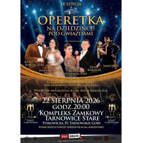 To już dziewiąty raz, gdy zapraszamy Państwa na wyjątkowe spotkanie z muzyką operetkową pod gwiazdami w magicznej scenerii dziedzińca zamku w Tarnowskich Górach. Koncert organizowany przez śpiewaków operetkowych i osobowości telewizyjne - Joannę Wojtaszewską - sopran i Kamila Rocha Karolczuka - tenor, odbył się po raz pierwszy w 2018 roku. Od tego czasu wydarzenie odbywa się corocznie, przyciągając publiczność nie tylko z całego Śląska, ale i z całej Polski, stając się nieodłącznym elementem kulturalnego kalendarza Tarnowskich Gór, Powiatu Tarnogórskiego oraz województwa śląskiego.